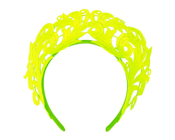 Elegant, modern fluro lime crown made from luxurious lace — perfect spring racing accessory.